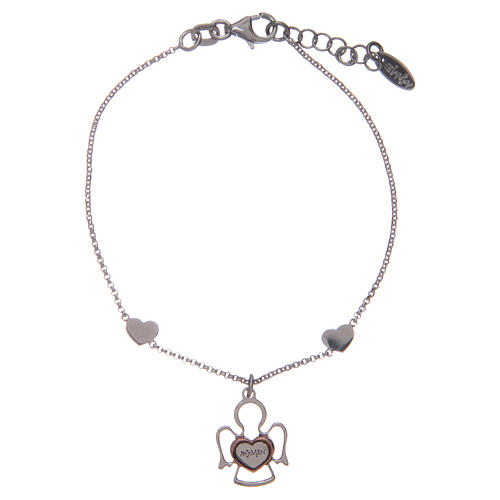 Amen bracelet in silver with 2 hearts and an angel. Silver bracelet with clasp and adjustable chain 2 cm long.