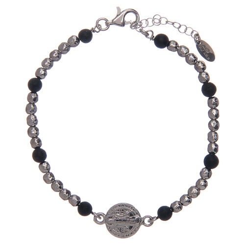 - Saint Benedict men's bracelet with silver and lava stone beads