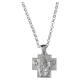 Our collection includes crucifix necklaces made from a variety of materials such as silver, stainless steel, wood, and enameled metal. You can choose from classic, minimalist, or more elaborate designs, with smooth, decorated, or crystal- or zirconia-embellished crosses. There are also modern versions like the cross choker necklace, ideal for those who want a contemporary accessory with strong symbolic value.