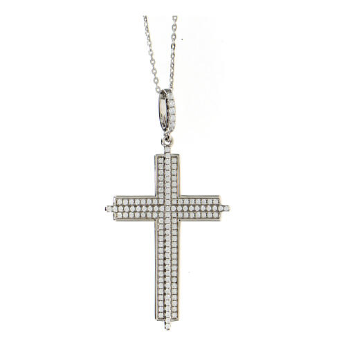 AMEN necklace with white zircon cross, rhodium-plated 925 silver. Necklace of 925 silver with rhodium-plated finished made of a thin chain and a cross-shaped pendant with a central longer cross of white zircons and an thicker cross of white zircons.