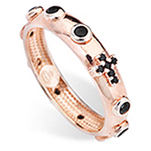 Rosary Ring AMEN rosè silver 925, blue zircons