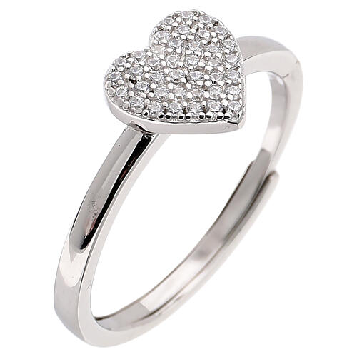 Adjustable ring with a central heart element and rhodium-plated finish, crafted in 925 silver with an open structure.