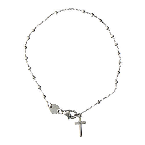 Agios rosary bracelet with cross-shaped dangle charm, rhodium-plated 925 silver. Rosary bracelet with small round beads and a cross-shaped dangle charm made of rhodium-plated 925 silver.