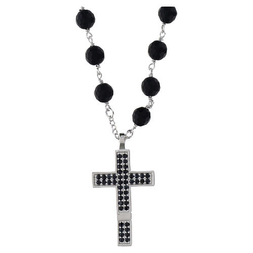 Benedictus necklace with black rhinestone cross and 0.24-inch onyx beads, 925 silver