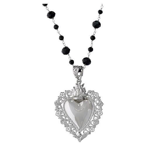 Benedictus Sacred Heart necklace in 925 silver with black crystal beads