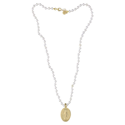 Necklace with Miraculous Medal, round beads, gold plated 925 silver, Benedictus