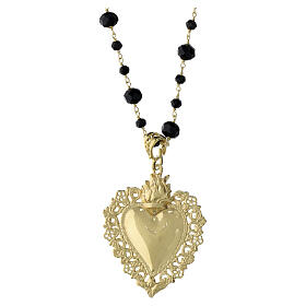 Benedictus 925 silver gold-plated necklace with Sacred Heart pendant and black crystals