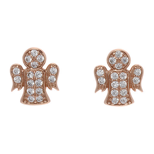 Stud earrings AMEN, angel with white zircons, pink 925 silver. AMEN earrings of pink 925 silver made in the shape of an angel with white zircons.