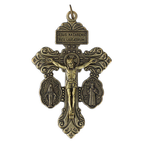 The cross depicts the crucified Christ, surmounted by the inscription "Jesus Nazarenus Rex Judaeorum".