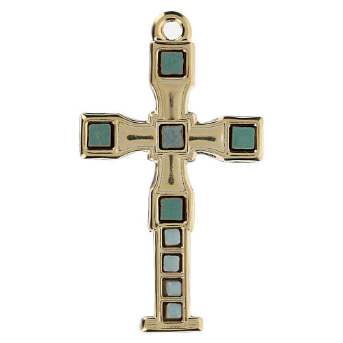 The peculiarity of this pendant is the mosaic effect, made with pieces of glazed terracotta inside the cross.