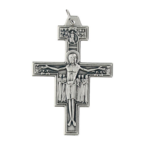 Saint Damien cross pendant in silver metal measuring 4.2cm.
