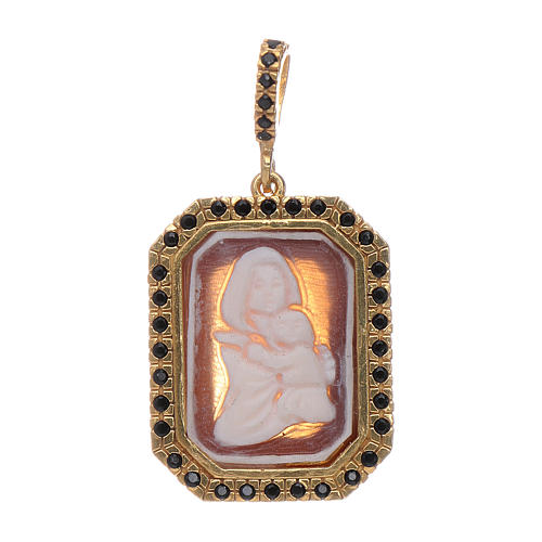 Pendant in 925 sterling silver with Our Lady of Ferruzzi in cameo and black zircons finished in gold