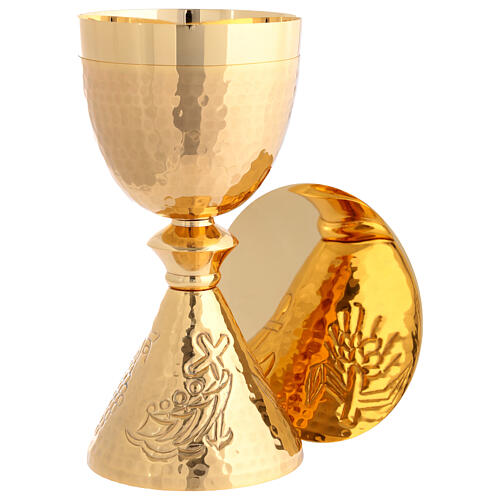 Jubilee chalice and paten, gold-plated brass, Eucharistic symbols, embossed finish