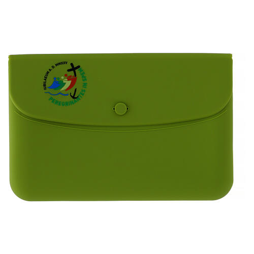 Green pouch with official Jubilee 2025 logo, silicone, 8x5 in.