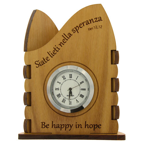 Jubilee pen holder with clock and logo, olivewood, Monastery of the Poor Clare Nuns of Albano Laziale
