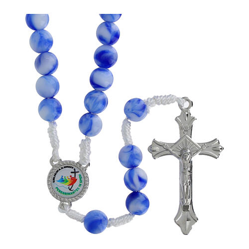 Jubilee rosary with white and blue acrylic beads. Rosary with a circumference of 20.9 in and a total length of 15.7 in.
