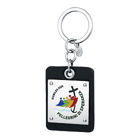 Key ring of Jubilee 2025, black leather and enamelled steel plate