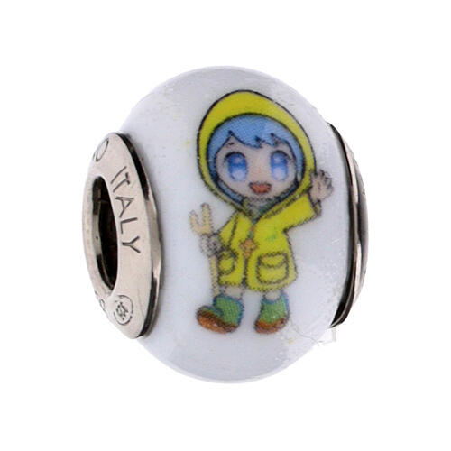 This Murano glass charm depicts Luce, the official mascot of Jubilee 2025, along with the official Jubilee logo and the motto Peregrinantes in Spem.