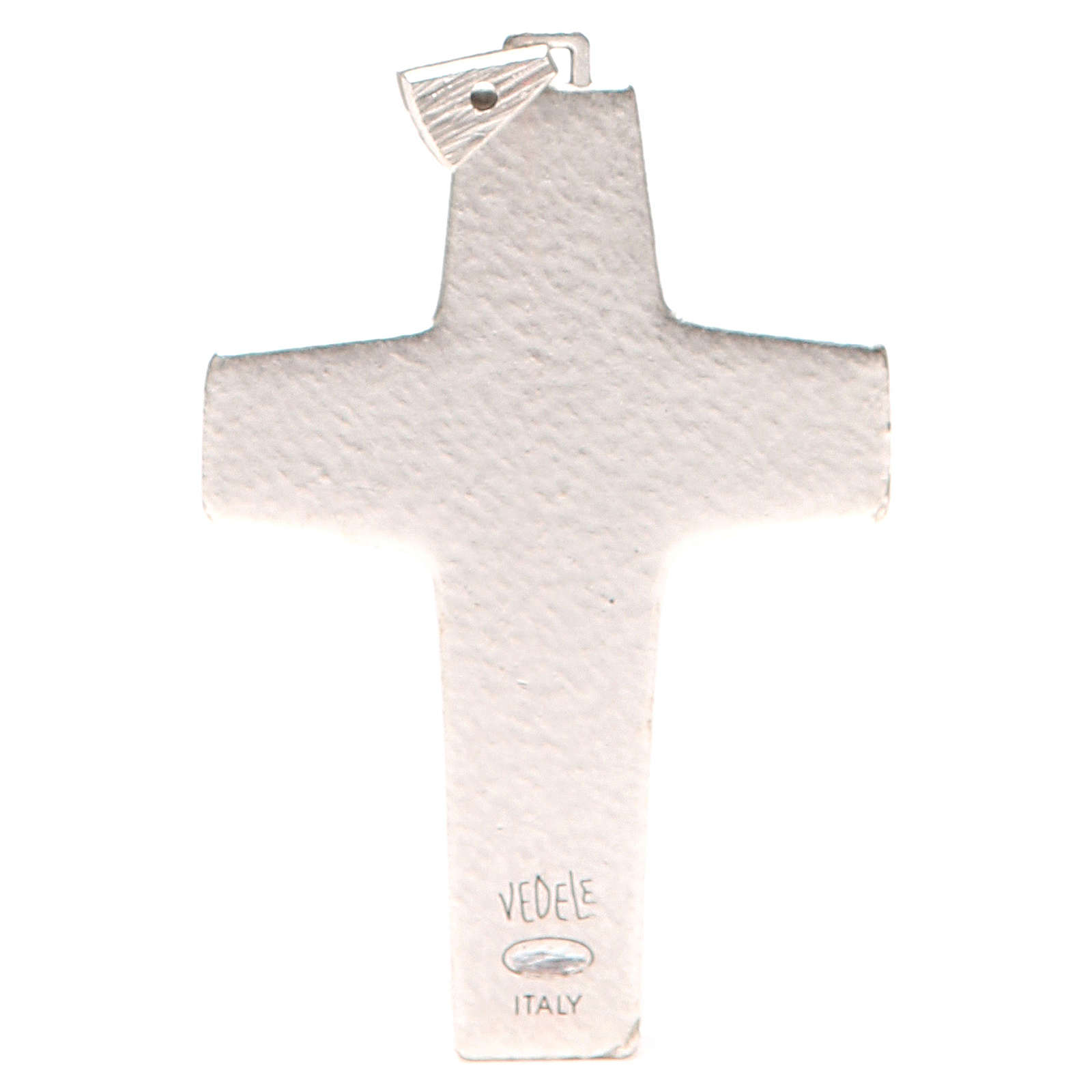 The cross was drawn by Genoese sculptor Antonio Vedele. It was chosen by Pope Francis himself, who refused to wear the golden cross, in order to wear one for the "poor ones".