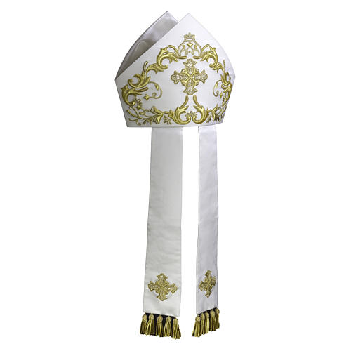 Mitre crafted by an artisan tailor with over half a century of experience in the creation of solemn sacred vestments.