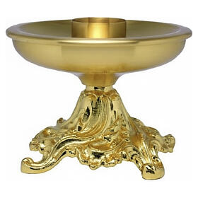 Candle holder in gold-plated brass with plate and jag h. 9 cm