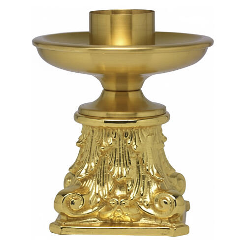 Altar candlestick, gold-plated brass, baroque base, 1.6-inch socket