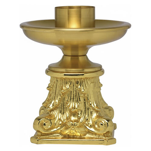 This Italian-made candlestick stands 3.9-inch high and features a 3.7-inch wax-collecting plate and a 1.6-inch socket designed for standard liturgical candles.