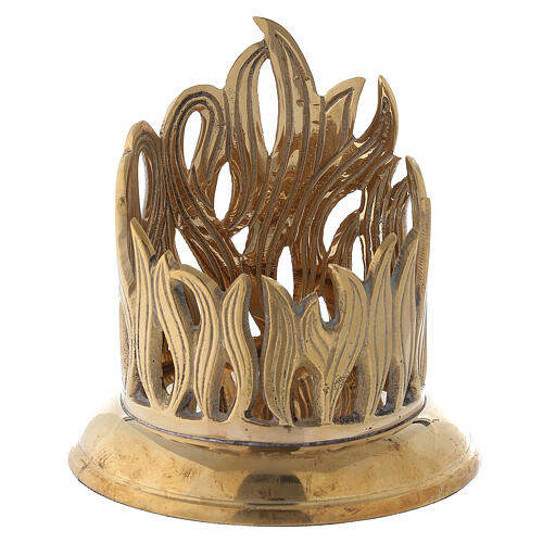 Candlestick with flame pattern, gold plated brass, 7 cm. Candlestick of gold plated brass with candle holder made of cut-out flames, suitable for candles of 7 cm diameter for domestic or liturgical use.