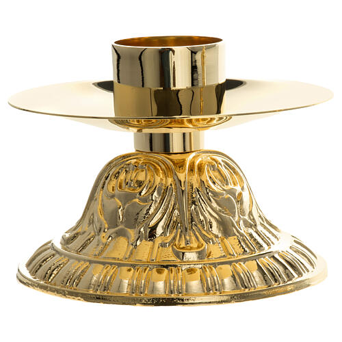 Gothic style gold plated cast brass candlestick, 1.6-inch diameter.