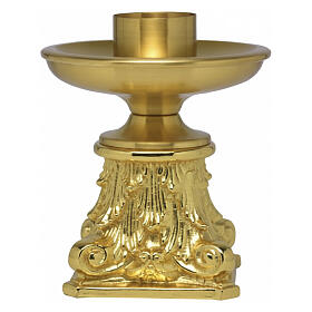 Candle holder with decorated base in golden brass, 1.6 in