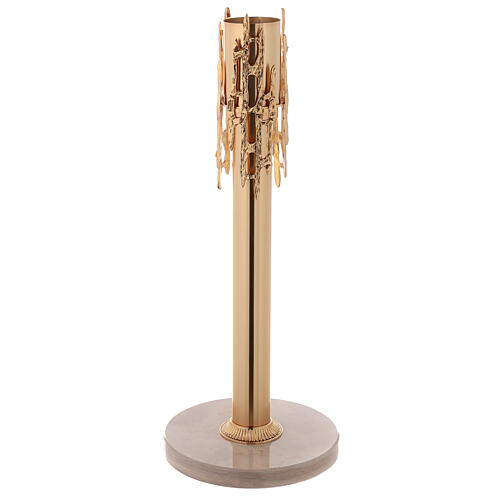 - Candle holder in cast brass measuring 70cm with base in marble