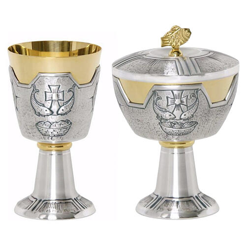 Chalice and ciborium with square chased loaves and fishes decoration