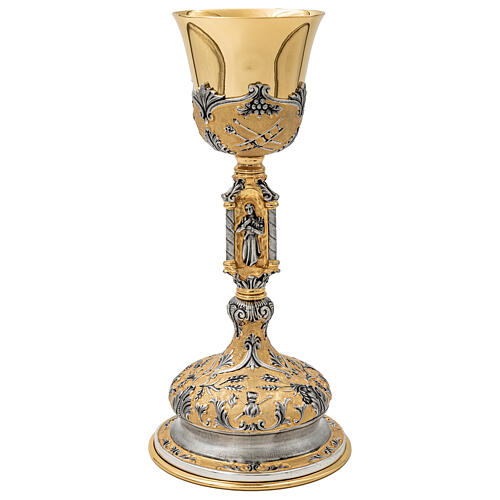 Liturgical chalice handcrafted in Italy using traditional techniques: lost-wax casting, turning, manual work, finishing, and 24 kt gold and silver plating.