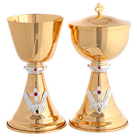 Chalice and ciborium Creation with red enamelled base, golden crosses, 8 in