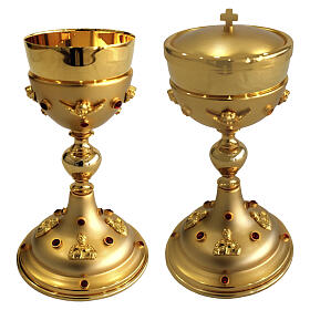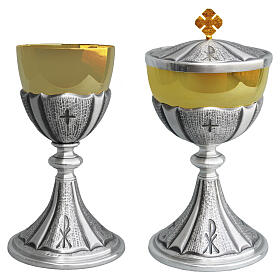 Chalice and ciborium with silver crosses on nodes, gold plated brass