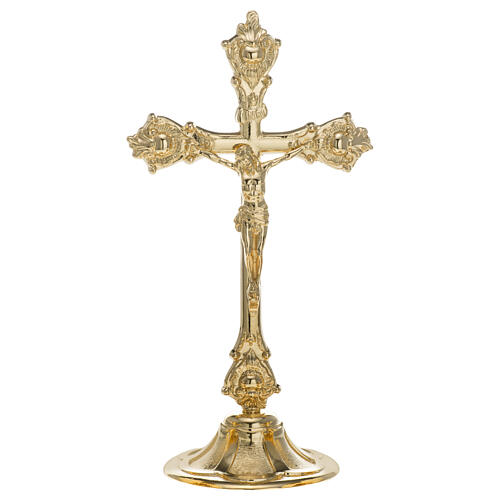 Gilded brass altar cross with base, 15 in.