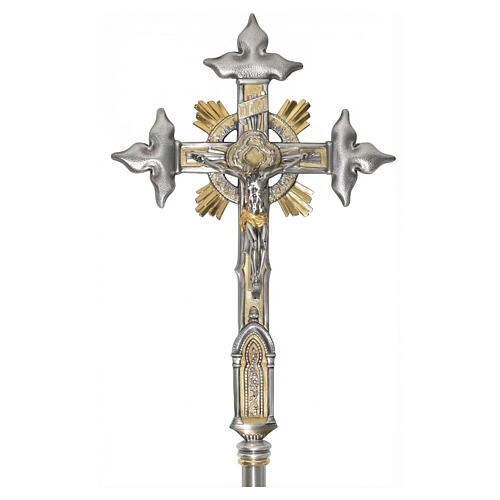 Processional cross, 60 in, two-tone with rays and tabernacle.
