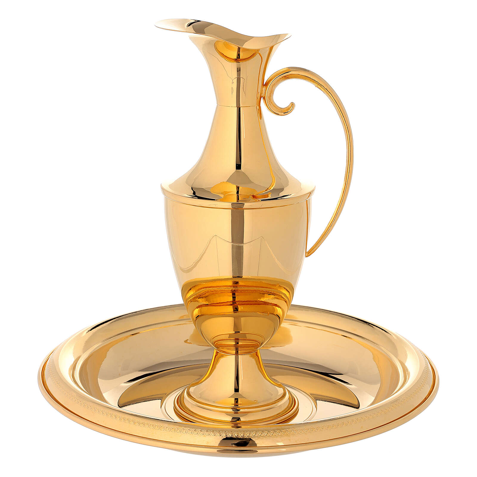 Ewer with plate in 24K golden brass. The classic style of the designs make this set fine and elegant.
