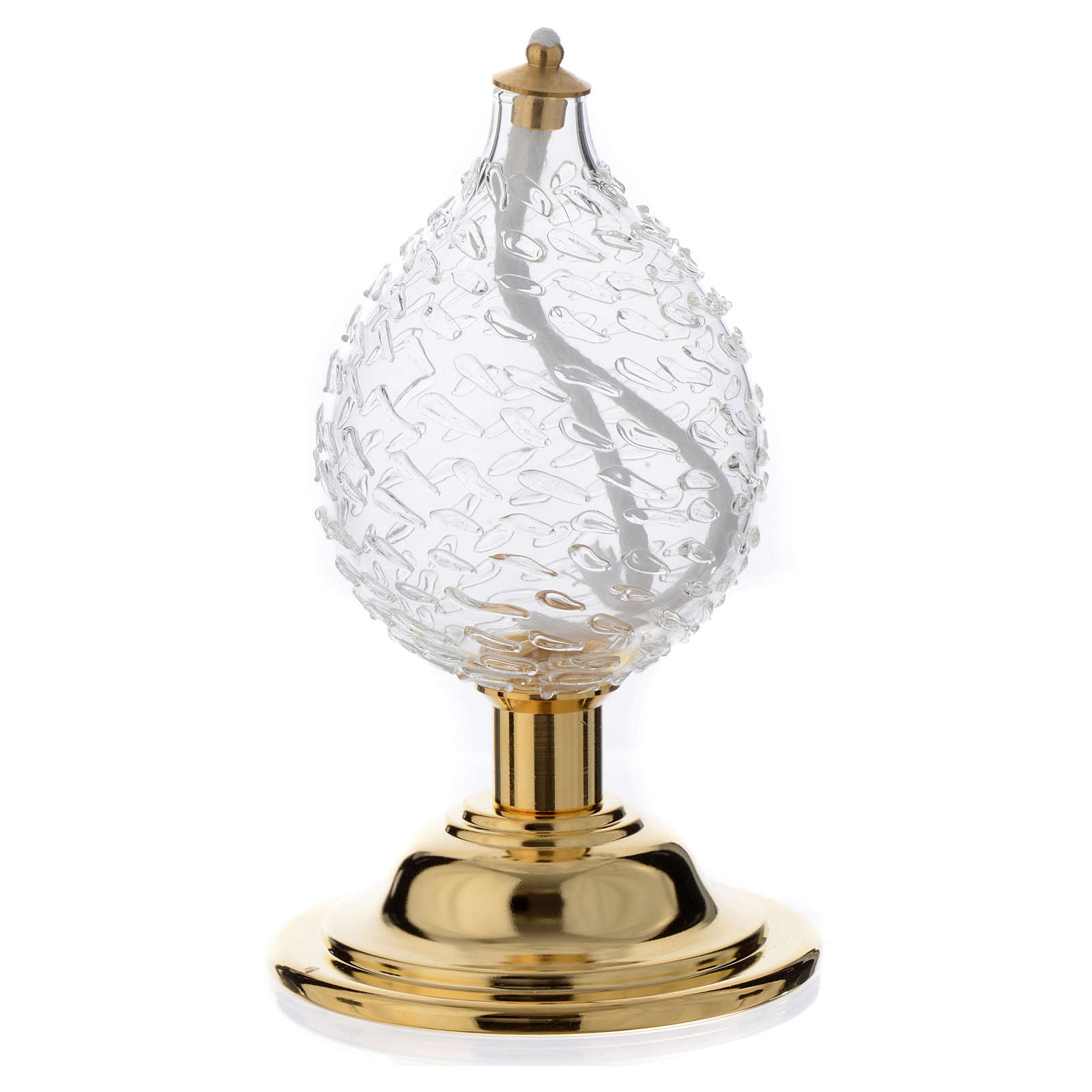 Liquid wax altar lamp in blown crystal with base in golden brass.