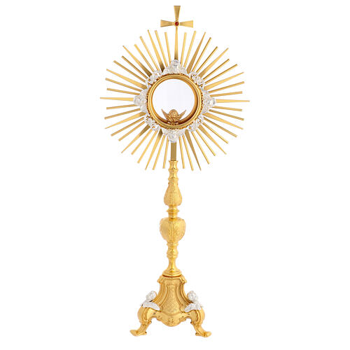 Gothic style monstrance with angels, 22 in, gold plated brass