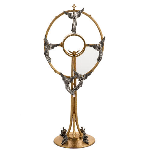 Monstrance in gold-plated bronze with angels and Evangelists, H 60cm (23,62in).