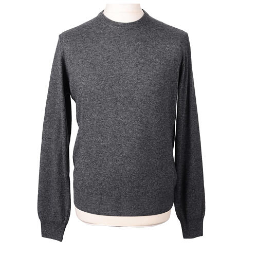 Anthracite brushed crewneck by In Primis, 10% cashmere, 40% merino wool.