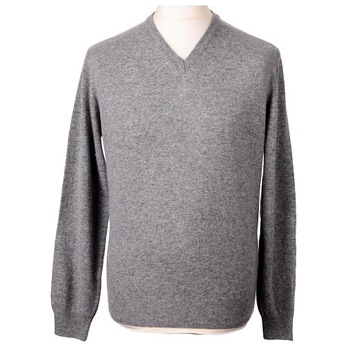 Grey brushed V-neck pullover by In Primis, 10% cashmere, 40% merino wool