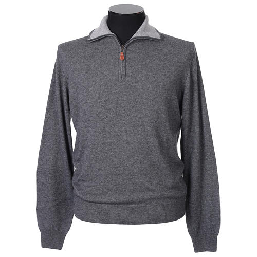 Trucker-style pullover in a refined anthracite shade, featuring a light grey contrast inner collar, a subtle detail that enhances the garment's design.