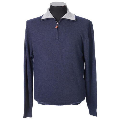 Trucker-style pullover by In Primis in a refined blue, featuring a light grey contrast inner collar for a timeless touch of style.