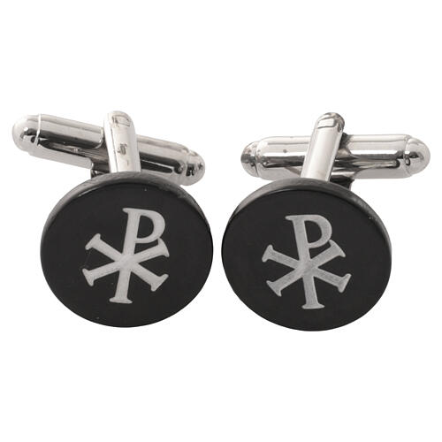- Cufflinks with Chi-Rho, round black mother-of-pearl button