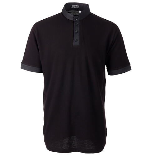 Clergy polo shirt by Cococler, short sleeves, black jacquard cotton.