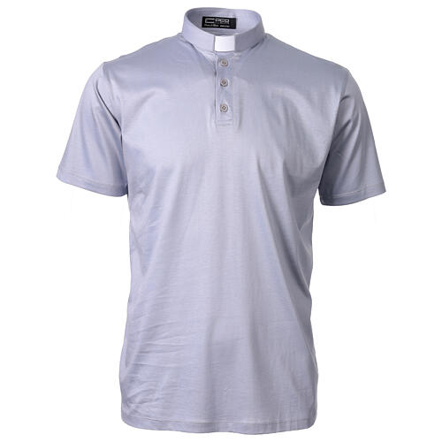 Light grey CocoCler polo shirt with clergy collar, 100% cotton lisle thread, short sleeve