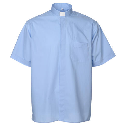 - STOCK Light blue popeline clergyman shirt, short sleeves
