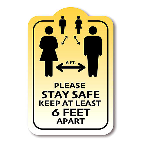 KEEP 6 FEET APART removable stickers 4 pieces. Removable stickes without any glue, using nanotechnological support made of thousands of micro suction cups per square centimeter.